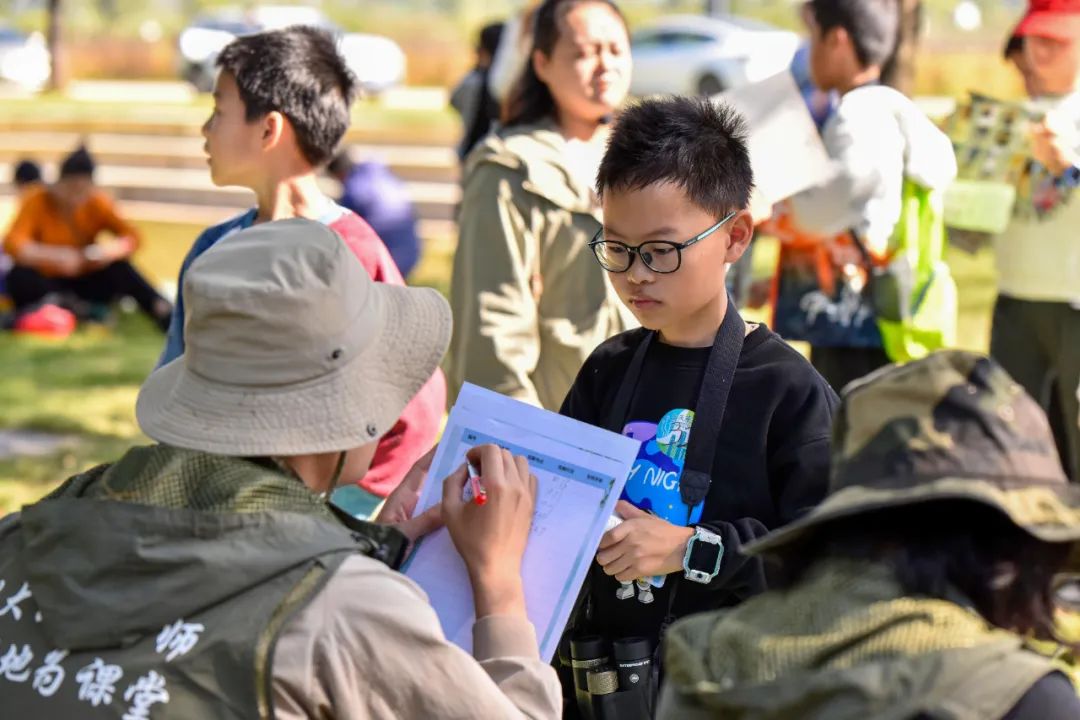 參賽者分為4支隊伍,分別在花溪灣的劃定區域內進行觀鳥和記錄。在田野間、池塘旁,參賽者有的舉著望遠鏡細細尋找著飛羽蹤跡,有的席地而坐填寫發現的鳥種。經過1小時的自由觀鳥后,參賽者將表格交到評分臺,開始答辯評分環節。“斑文鳥身上有斑點嗎?”“烏鶇有什么特點?”觀鳥導師根據觀鳥記錄表,逐一對選手進行提問,不少選手對觀察到的鳥類的特征侃侃而談。經過答辯后,現場按分數高低評出獎項,并舉行了頒獎儀式。