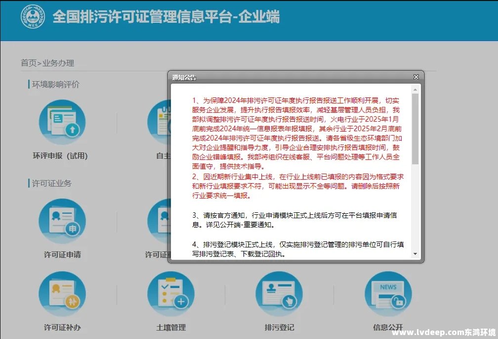 近期,生態環境部發布《關于調整2024年排污許可證年度執行報告報送時間的公告》,擬調整排污許可證年度執行報告報送時間,火電行業于2025年1月底前完成2024年統一信息報表年報填報,其余行業于2025年2月底前完成2024年排污許可證年度執行報告報送。